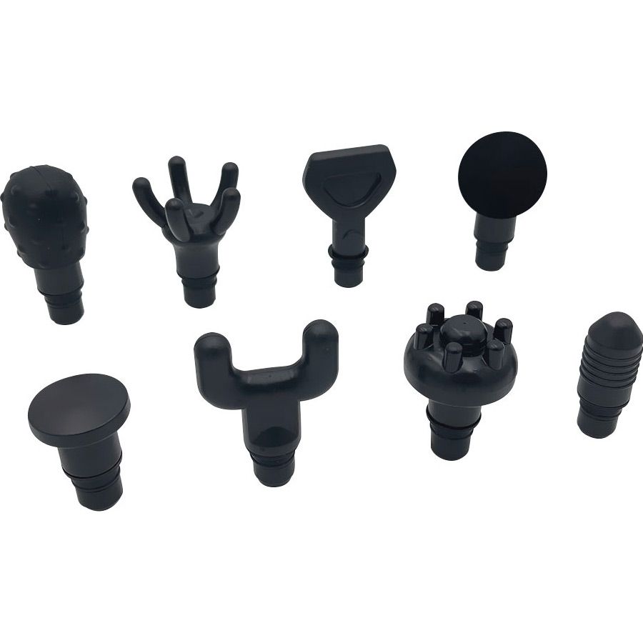 Комплектація | Перкусійний масажер • насадки 8 шт • зарядний пристрій • гумова втулка для насадки 4 шт • документація |
