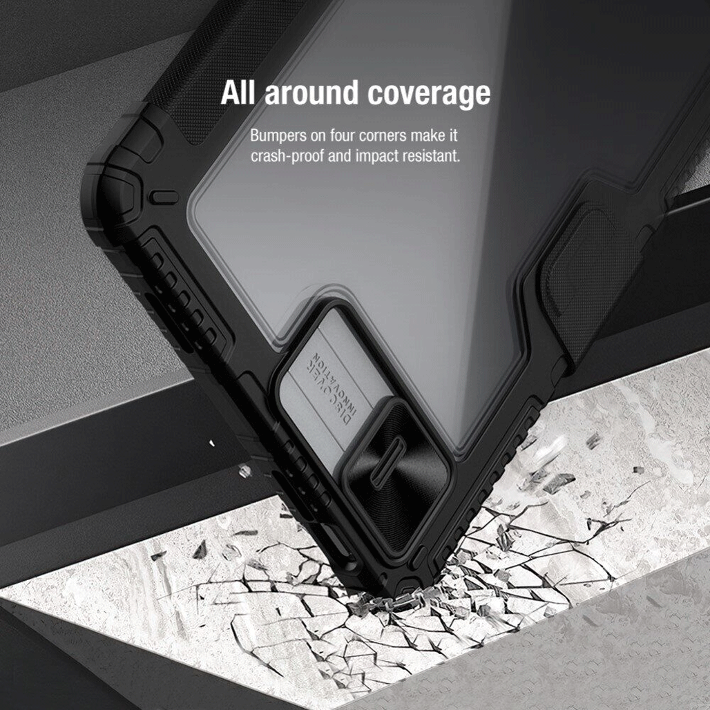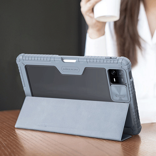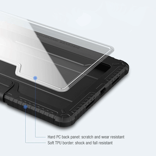 NILLKIN Bumper - це посилений захисний чохол для Xiaomi Mi Pad, який гарантує безпеку апарата навіть у найбільш непередбачуваних ситуаціях. Його конструкція складається з двох компонентів: основи-тримача і зовнішньої обкладинки. Основа складається з комбінації міцного пластикового панцира та еластичного силіконового канта, що разом забезпечують відмінну амортизацію ударів. Краї, посилені за технологією "Airbag", додатково гасять удар при найнебезпечніших падіннях "ребром".