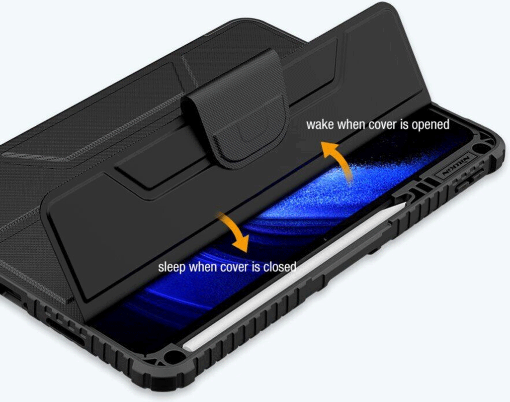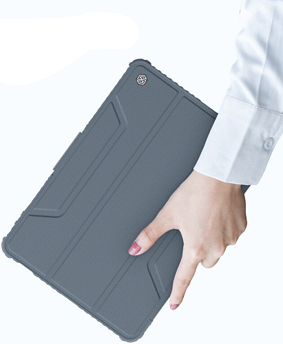 Обкладинка виконана з текстурованого поліуретану, поверхня якого не збирає на собі відбитки, і добре захистить від пошкоджень екран пристрою. Для всіх роз'ємів і камери передбачені спеціальні вирізи, що забезпечать звичний комфорт роботи. Кнопки прикриваються чутливими до натискання дублікаторами, які додатково захистять їх від пилу та вологи. Також тут є спеціальний магнітний замок, який щільно фіксуватиме чохол у закритому положенні під час транспортування. А за потреби, відкинувши назад верхню кришку, його можна перетворити на зручну підставку для перегляду відео чи читання з екрана.