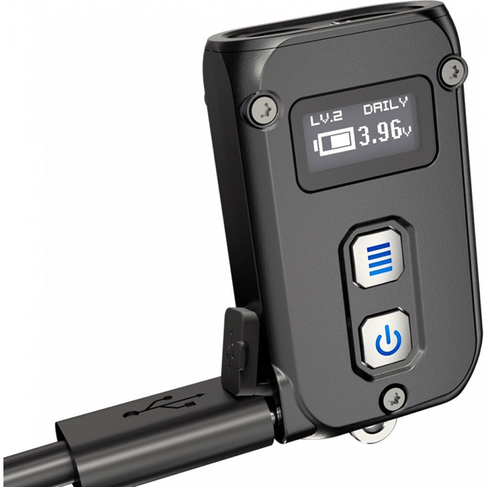 Важливою особливістю, є наявність вбудованого OLED-дисплея. Незважаючи на настільки невеликий корпус ліхтаря, виробником було вирішено обладнати його інформативним дисплеєм. Завдяки наявності яскравого дисплея, дозволить користувачеві бачити в режимі реального часу, а саме прямо під час керування ліхтарем, відстежувати рівень заряду акумулятора і його напруга, встановлену яскравість і призначений для користувача режим роботи, а також залишок часу роботи в установленому режимі.