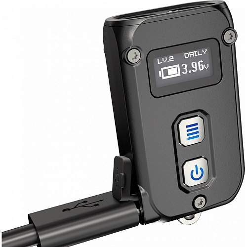 Важливою і головне ємною складовою ліхтаря Nitecore TINI2, є його акумулятор. Вбудований літій-іонний акумулятор в наключному ліхтарі, є дуже практичним елементом, дозволяючи відновлювати заряд в будь-який зручний момент від різного типу портативних зарядних пристроїв. Зарядку можна здійснювати через вбудований USB Type-C порт за допомогою Power Bank, автономних станцій і сонячних батарей. USB Type-C порт надійно захищений від зовнішніх факторів таких як, пил, бруд і волога. Вбудований акумулятор має ємність 280 mAh, і такого запасу заряду буде досить для безперервної роботи ліхтаря в мінімальному режимі яскравості до 60 годин.