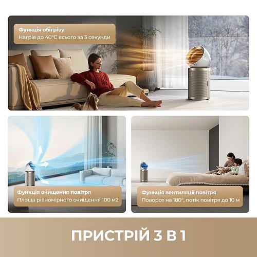 Навіть у найшвидшому режимі очищення повітря рівень шуму очисника, що працює, не перевищує 60 дБ (А). Очисник повітря завжди працює тихо. Він спроектований з урахуванням потреб дітей та свійських тварин, тому не порушить їх сон.