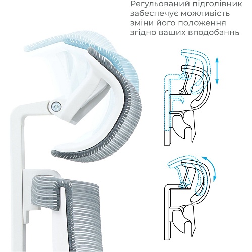 | Регулювання | Висота підголівника, Висота системи підтримки попереку, Висота підлокітників, Висота сидіння, Глибина підлокітників, Напрямку підлокітників, Кут нахилу підголівника, Кут нахилу спинки |