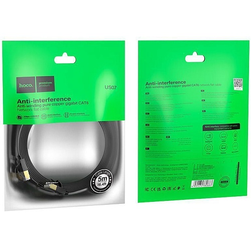 Патч-корд Hoco US07 General Cat 6 U/UTP Pure Copper Flat Network Cable 5m Black (780706)