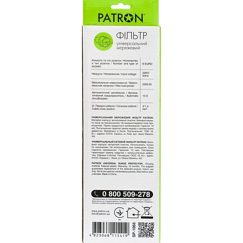 Мережевий фільтр Patron SP-1065 Black (SP-1065)