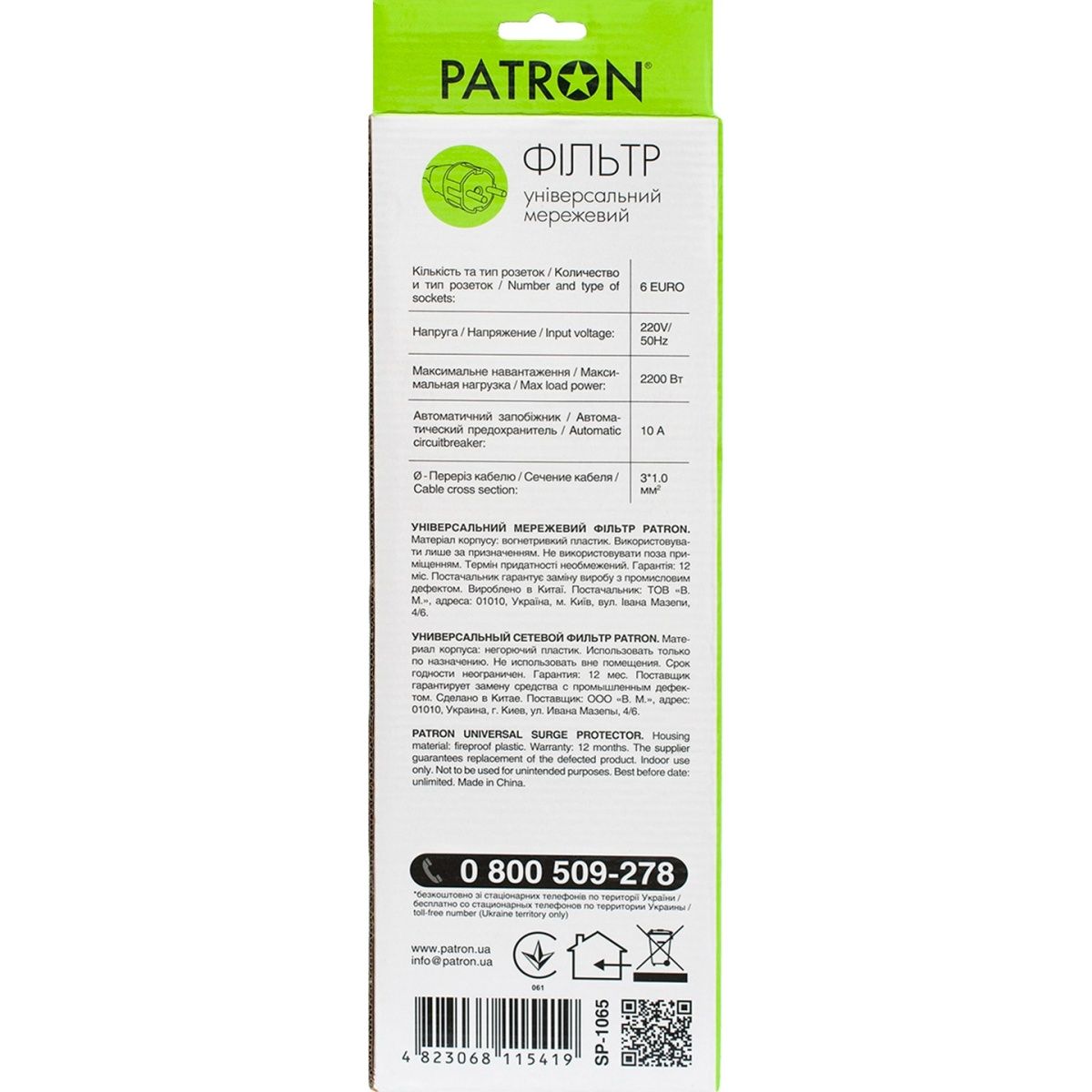 Мережевий фільтр Patron SP-1065 Black (SP-1065)