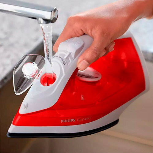 Виробник подбав про максимальну зручність використання праски. Завдяки фірмовій технології очищення від накипу Calc Clean можна заливати звичайну водопровідну воду в резервуар відпарювача. Спеціальний слайдер очищення від накипу значно спрощує догляд за праскою. Якщо ви використовуєте водопровідну воду, виробник рекомендує проведення очищення від накипу не рідше 1 разу на місяць. Резервуар для води був збільшений до 220 мл для більш тривалого прасування без необхідності його наповнення.