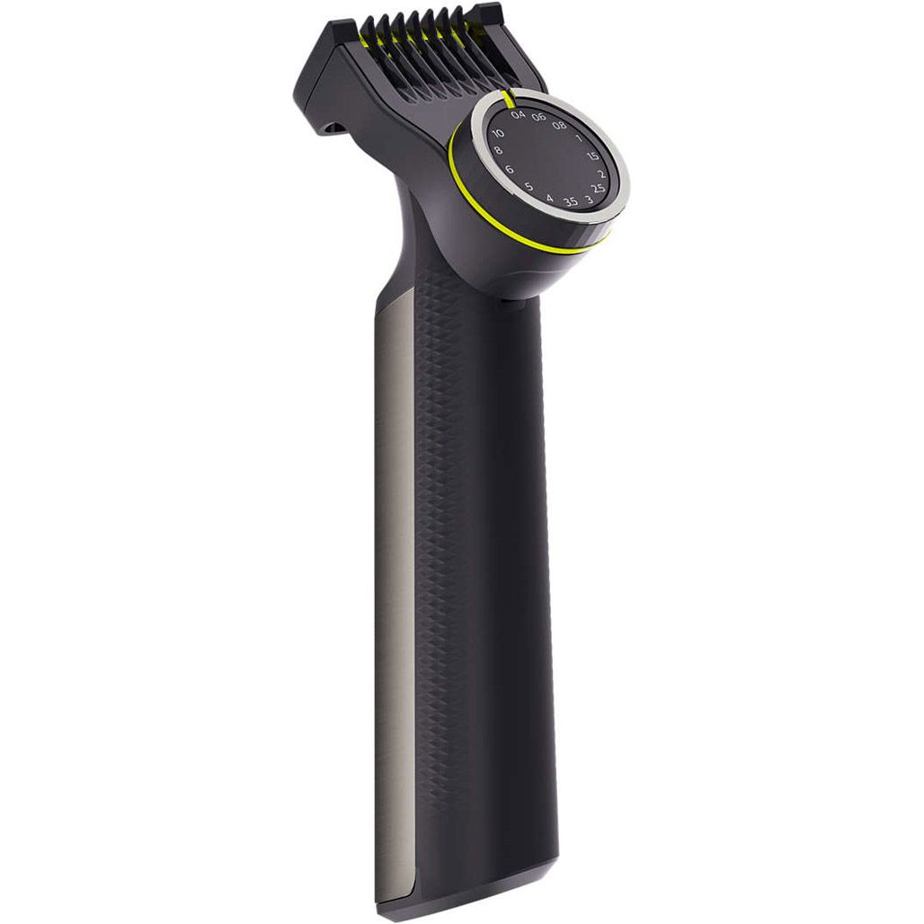 Отримайте ідеально підстрижену бороду за допомогою точної гребінця з комплекту OneBlade Pro. Виберіть одну з 14 налаштувань довжини, щоб створити будь-який образ. Двостороннє лезо дозволяє створювати точні контури та підрівнювати бороду у будь-якому напрямку. Завдяки OneBlade Pro ви завершите свій стиль за лічені секунди без порізів та подразнень.