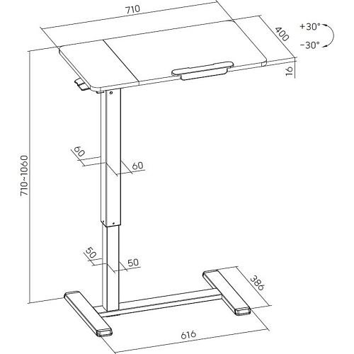 | Особливості | Підстаканник, Регулювання кута нахилу стільниці |