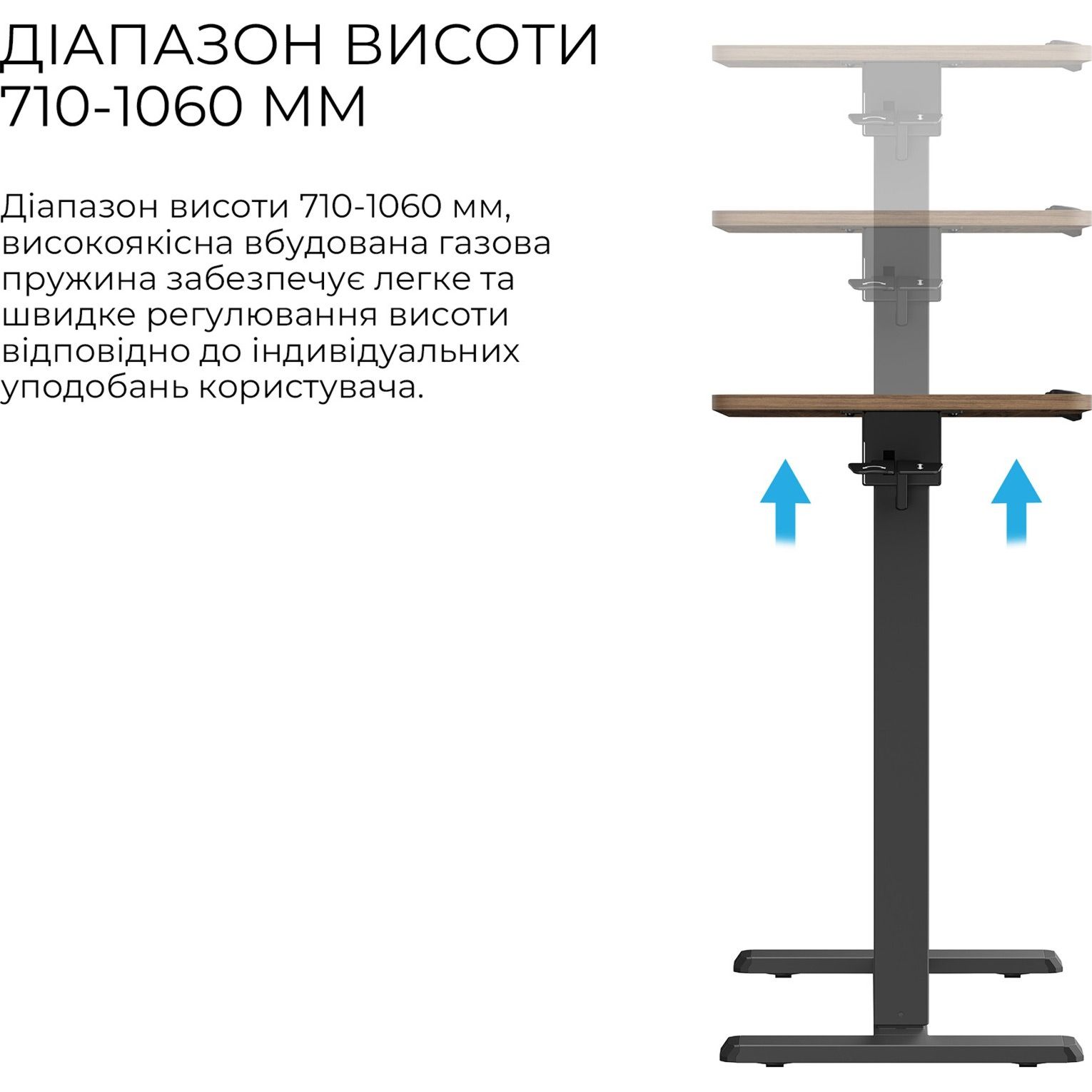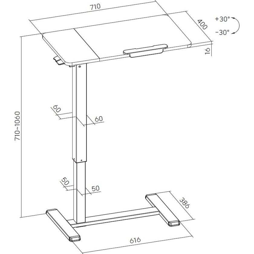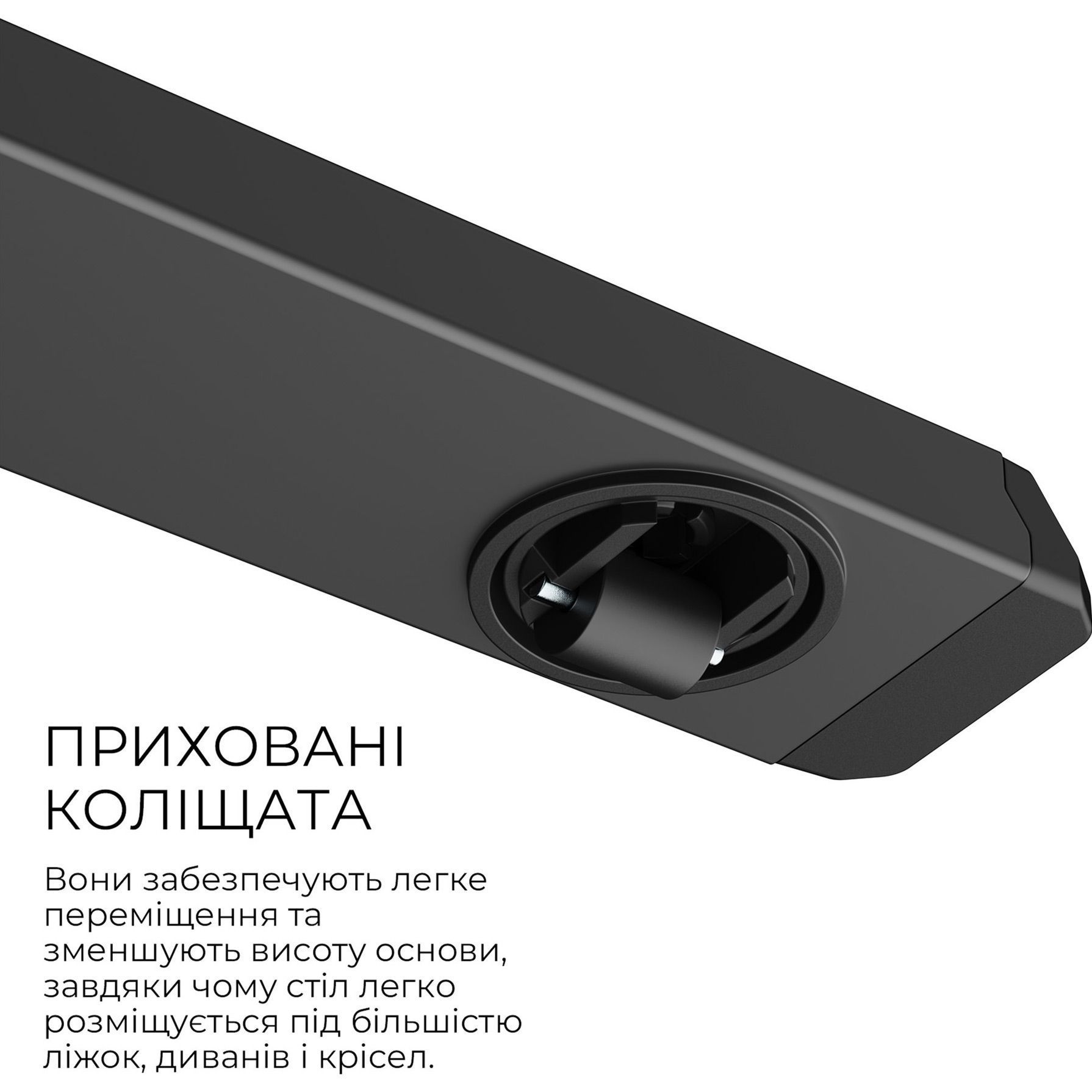 | Комплектація | Стільниця (з двох частин) • вертикальна стійка з механізмом регулювання висоти • опорна платформа з вбудованими коліщатками • захисний бортик • монтажний комплект • документація |