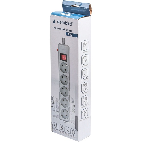 Мережевий фільтр Gembird SPG5-G-15G-PRO Gray