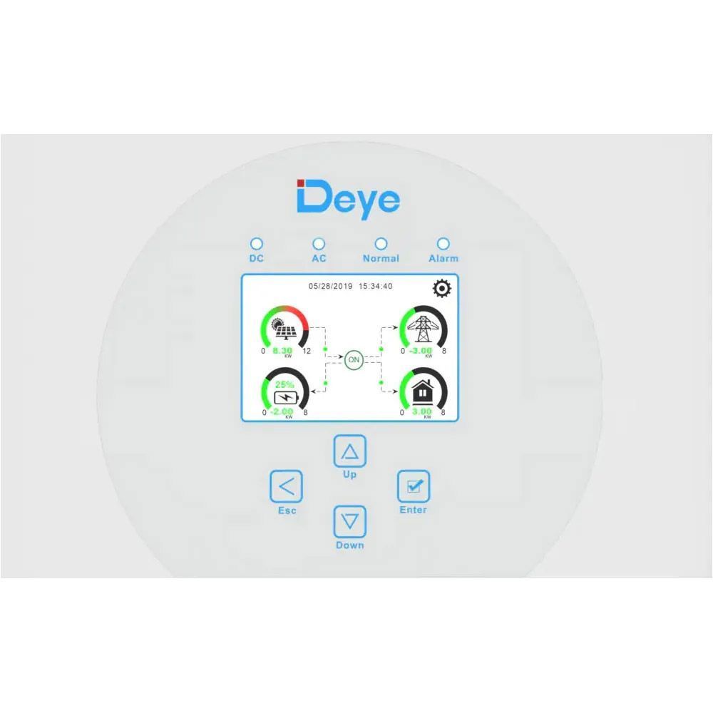 Інтерфейс інвертора Deye дозволяє зручно налаштовувати параметри роботи, такі як напруга, струм, час затримки та інші режими. Це дозволяє оптимізувати ефективність використання сонячної енергії для максимального комфорту та результативності. Інтерфейс інтуїтивно зрозумілий і легкий у використанні, що робить налаштування швидким і безперешкодним процесом.
