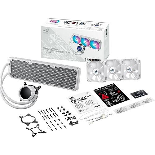 ROG Strix LC III 360 ARGB LCD створена для тих, хто прагне не лише високої ефективності, а й вишуканої естетики. Система оснащена оновленою помпою Asetek Gen7 v2 та потужними вентиляторами ROG ARGB, які забезпечують стабільне охолодження навіть для процесорів із високим тепловиділенням, зокрема серій AMD Ryzen та Intel Core. Водоблок з поворотним механізмом на 360° дозволяє обрати найбільш зручний спосіб монтажу. А підсвічування Aura з широким набором режимів додає яскравого акценту і робить збірку виразною. Це гармонійне поєднання потужності, гнучкості та сучасного дизайну, що підкреслює характер вашої системи.