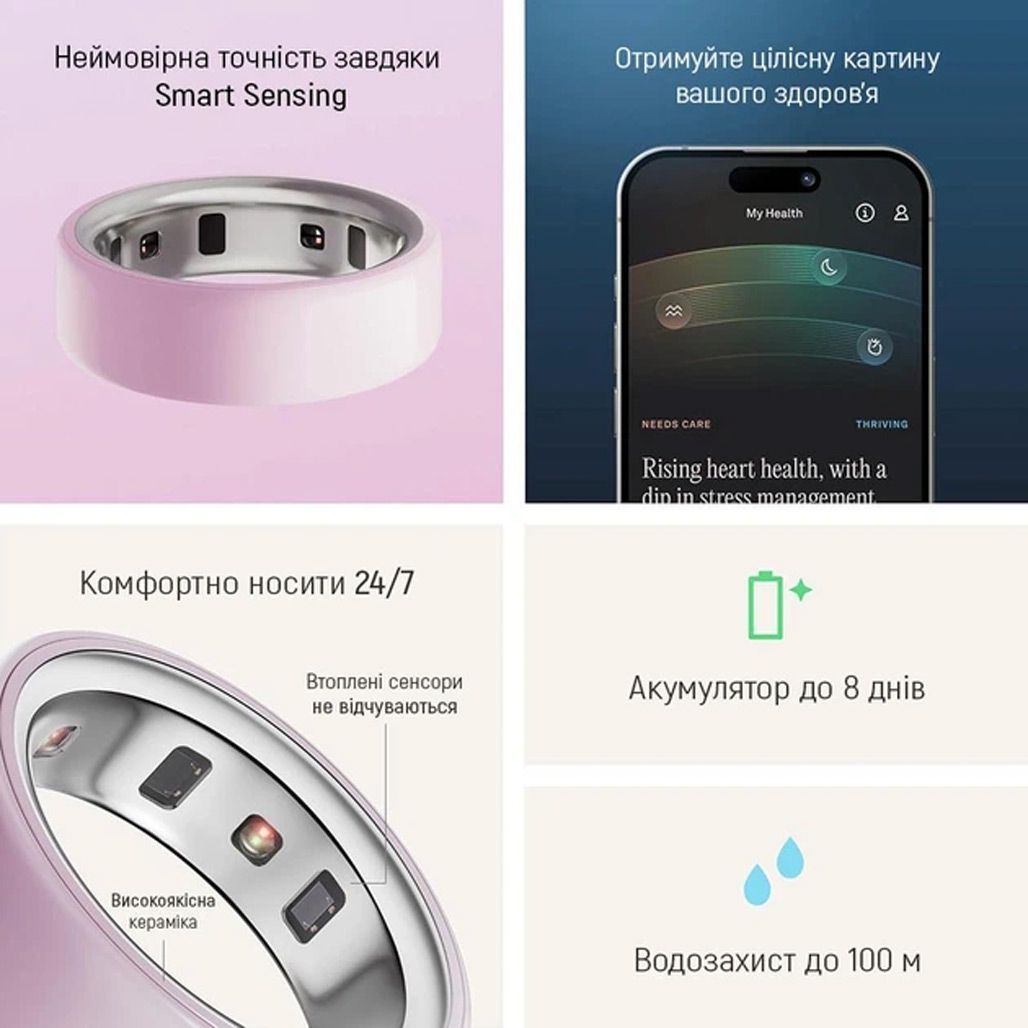 | Комплектація | Смарт-кільце • зарядний пристрій • кабель USB-C • керамічна полірувальна насадка • документація |