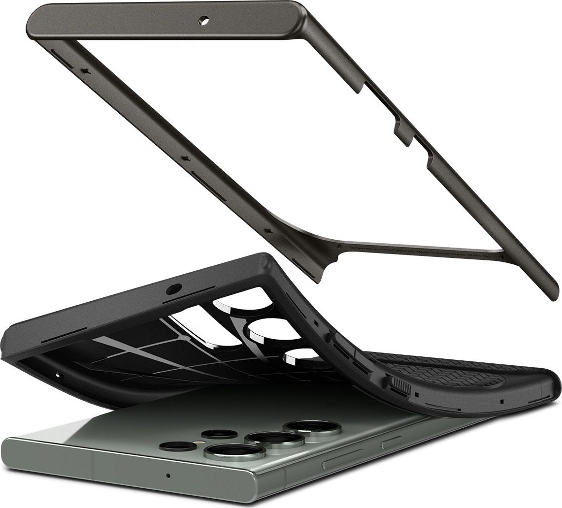 Він виконаний у повній відповідності до форми та розмірів корпусу Samsung Galaxy S23 Ultra, щільно на ньому фіксується, залишаючи при цьому вільний доступ до портів і камери. Для клавіш передбачені м'які пило- та вологозахисні дублікатори. Сам аксесуар складається з двох частин основи з високоякісного поліуретану (TPU) та міцної полікарбонатної накладки. Така конструкція надійно захистить гаджет від усіляких повсякденних ушкоджень, дозволяючи надовго зберегти його первозданний вигляд.