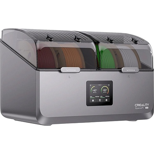 Сушарка Creality SpacePi розроблена для одночасної роботи відразу з чотирма котушками філаменту, що значно підвищує ефективність підготовки матеріалів до друку. Пристрій підтримує одночасну сушку і друк, дозволяючи не переривати робочий процес 3D-принтера. Таке рішення особливо зручно при багатоколірному друку і при роботі з декількома типами філаменту, коли потрібна стабільна якість кожного матеріалу без пауз і повторних циклів сушіння.