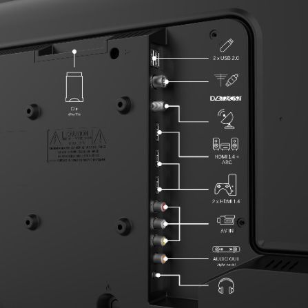 Роз'єми та порти | 2 x USB 2.0 (Type-A), 3 х HDMI 1.4, 1 x 3.5 mm Headphone Jack, 1 x S/PDIF Coaxial, 1 x AV (input), 1 x CI+ 1.4 |