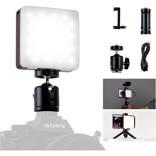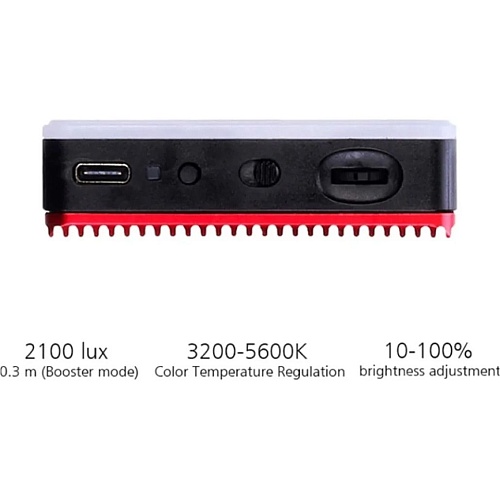 Комплектація | Накамерне світло • гарячий башмак • тримач для телефону • настільна підставка-штатив • кабель USB-А – USB-C • шнурок на зап'ястя • документація |