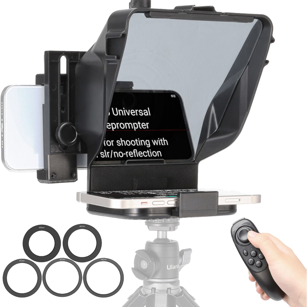 Комплектація | Телесуфлер • пульт керування • тримач для смартфона • кільця на об'єктив (58 мм, 67 мм, 72 мм, 77 мм, 82 мм) |