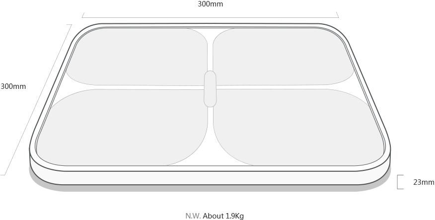 Цілісний корпус розміром 300 x 300 мм – одна з головних переваг девайса. Ви не побачите ніяких вбудованих металевих контактів для вимірювань на поверхні ваг! Ідеально рівне загартоване скло з покриттям ITO забезпечує проходження імпульсів по всій поверхні, при цьому товщина корпусу складає всього 2 сантиметри! YUNMAI Pro пожвавлять своєю присутністю будь-яке приміщення і стануть родзинкою в інтер'єрі!