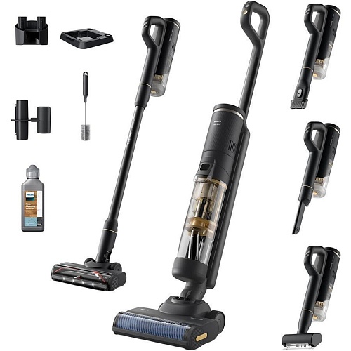 Philips AquaTrio XW7264/11 об’єднує три функції в одному пристрої: сухе й вологе прибирання та режим ручного пилососа. Такий підхід дозволяє швидко впоратися з пилом, рідиною, плямами та навіть бактеріями без попередньої обробки поверхні. Перемикання між режимами займає лише мить, що робить прибирання максимально гнучким і підлаштованим під будь-які потреби. Це рішення дозволяє економити час та зусилля, залишаючи підлогу бездоганно чистою.