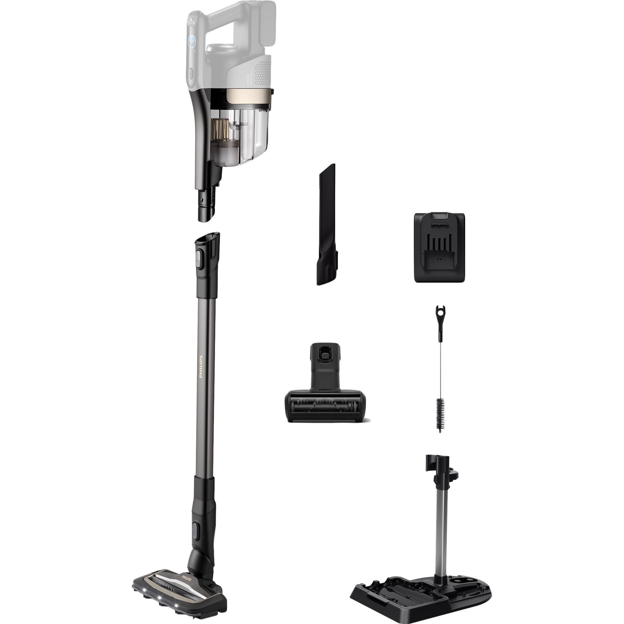 Після завершення прибирання пилосос самостійно проходить цикл очищення, видаляючи залишки вологи, бруду та бактерій зі щіток і каналів. Це дозволяє уникнути ручного догляду та забезпечує готовність пристрою до наступного використання. Гігієнічна система очищення значно спрощує обслуговування і подовжує термін служби пилососа. Додатковою перевагою є компактне зберігання завдяки органайзеру для насадок та док-станції, що забезпечує зручність і порядок у вашому просторі.