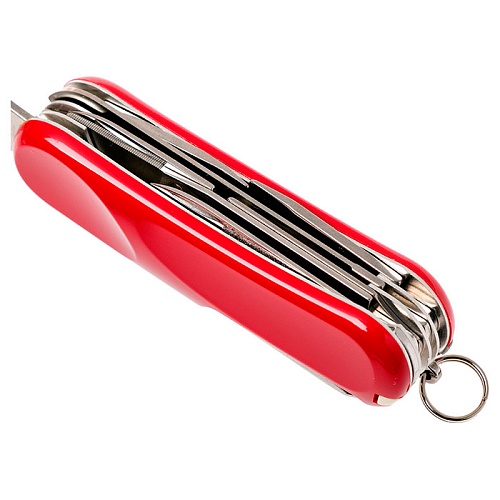 Інструменти у комплекті | Велике лезо, Зубочистка, Консервний ніж, Ножиці, Викрутка хрестова, Викрутка плоска маленька, Викрутка плоска, Відкривачка для пляшок, Пилка для нігтів, Пилка по дереву, Пінцет, Шило, кернер |