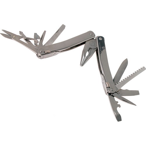 | Інструменти у комплекті | Кусачки звичайні, Викрутка плоска велика, Ножиці, Плоскогубці, Викрутка плоска маленька, Відкривачка для пляшок, Шило, кернер, Консервний ніж, Велике лезо, Напилок по металу, Хрестова викрутка, Багатофункціональний гачок, Інструмент для зняття ізоляції |
