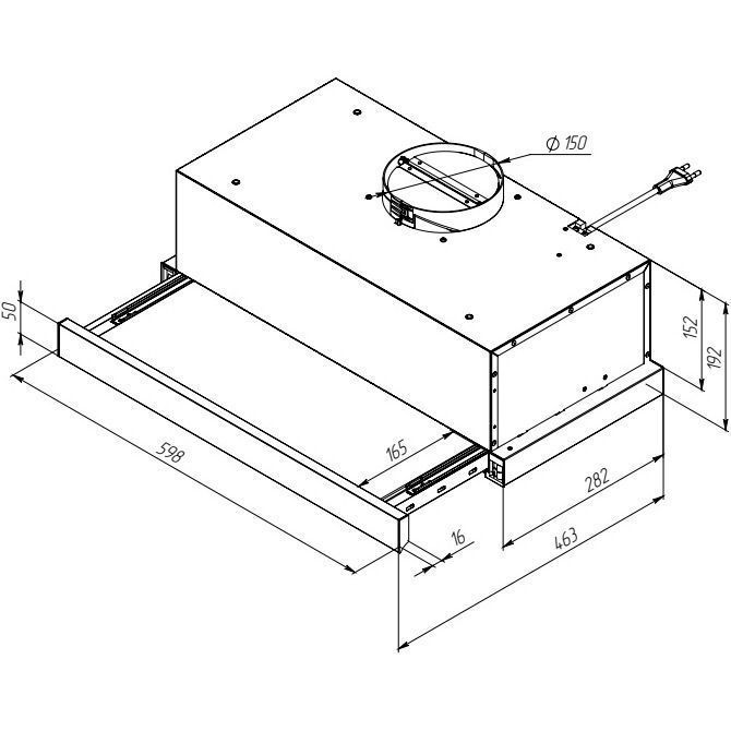 | Комплектація | Витяжка • зворотний клапан • шнур живлення з вилкою • документація |