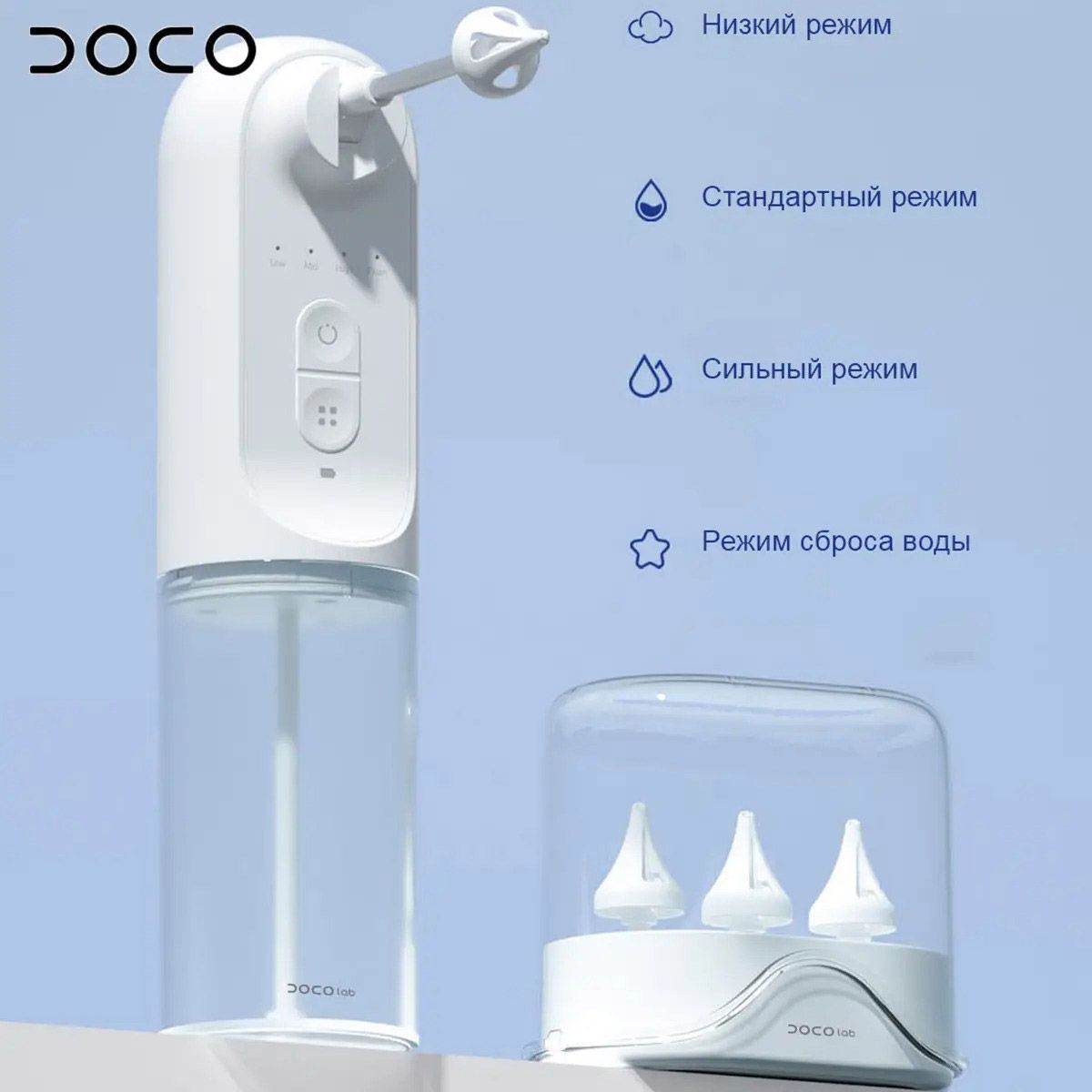 | Комплектація | Іригатор вушний • змінні насадки 3 шт • контейнер-кришка • база для зберігання насадок • документація |