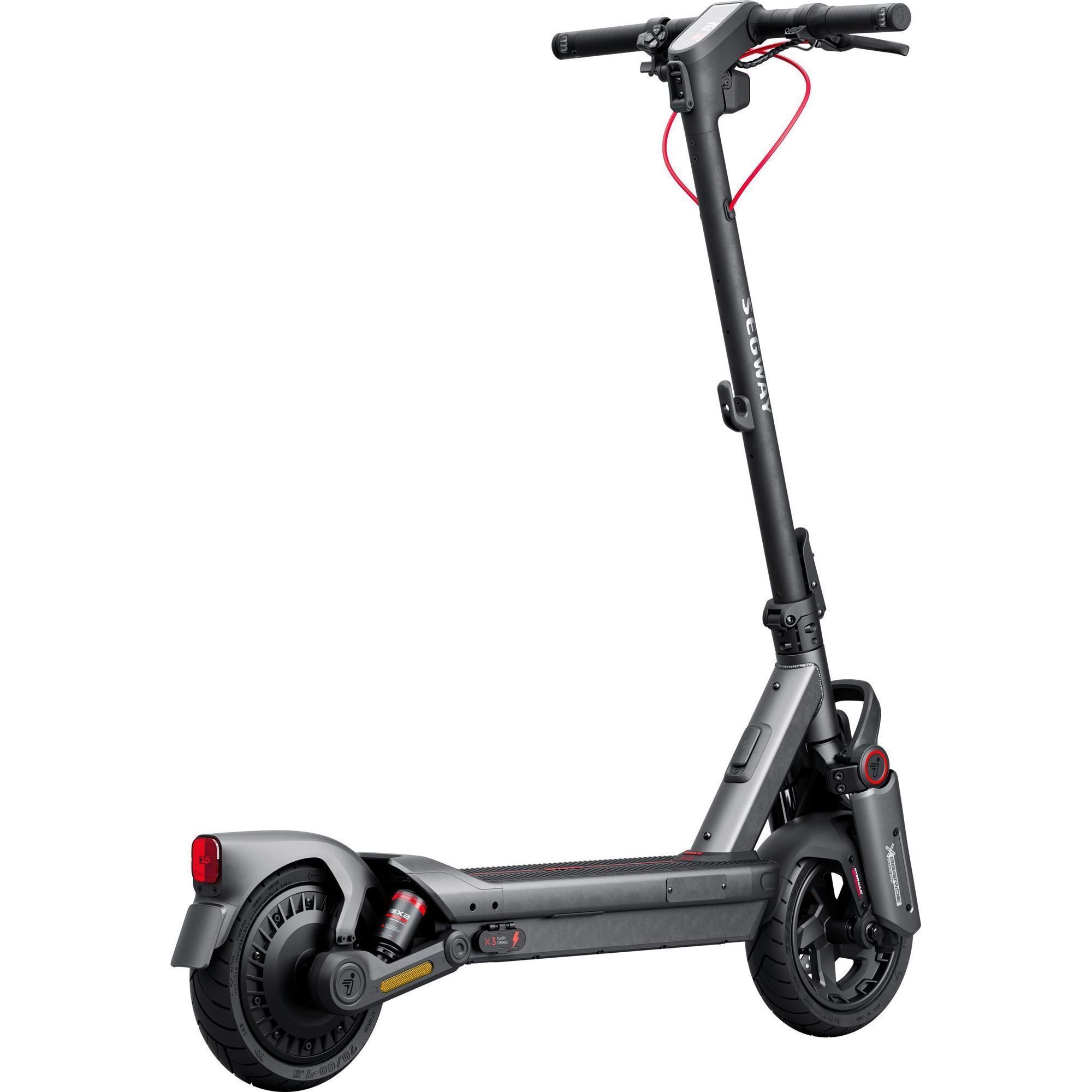 Для забезпечення максимального комфорту Ninebot by Segway MAX G3 E оснащений подвійною гідравлічною підвіскою, як спереду, так і ззаду. Це дозволяє легко справлятися з нерівностями на дорозі і покращує керованість на різних покриттях, забезпечуючи стабільну і м'яку їзду.