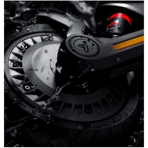Електросамокат має ступінь водонепроникності IPX6, що дозволяє використовувати його в будь-яких погодних умовах, включаючи дощові дні. Акумуляторна батарея має ступінь захисту IPX7, що також запобігає потраплянню вологи в корпус і батарею, забезпечуючи їх довговічність і надійну роботу.