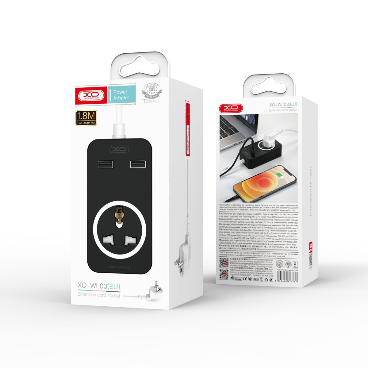 Мережевий фільтр XO WL03 2USB/ 1 OUTLET/ 10A (Black)