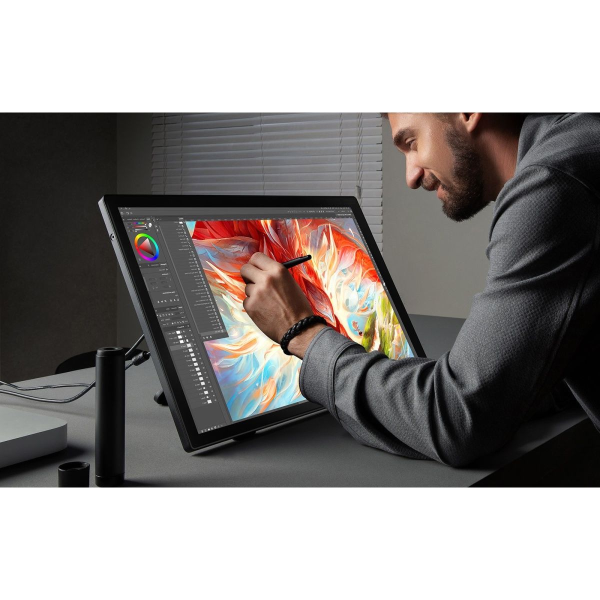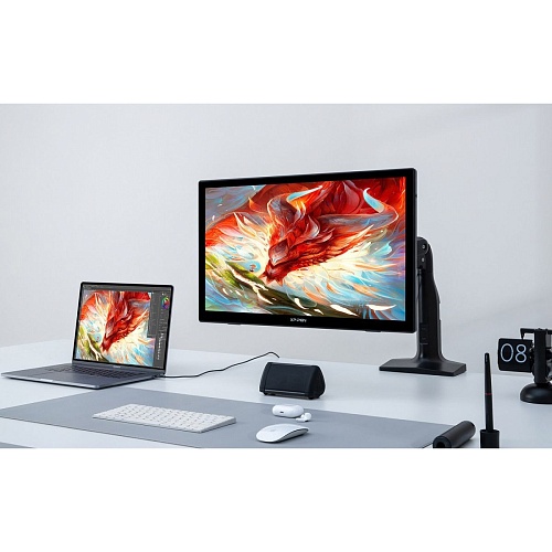 Графічний монітор XP-Pen Artist 24 FHD - це ідеальний інструмент для художників, дизайнерів і всіх, хто працює з графікою та цифровим мистецтвом. З діагоналлю екрана 23,8 дюйма та робочою зоною 527x296 мм, цей монітор дає змогу вам розкрити весь потенціал творчості, надаючи достатньо простору для роботи над складними проектами. Роздільна здатність 1920x1080 пікселів і високоякісна IPS-матриця забезпечують яскраве, чітке і насичене зображення, що дає можливість точного опрацювання всіх деталей, чи то векторна графіка, чи то фотоманіпуляції, чи то живопис.